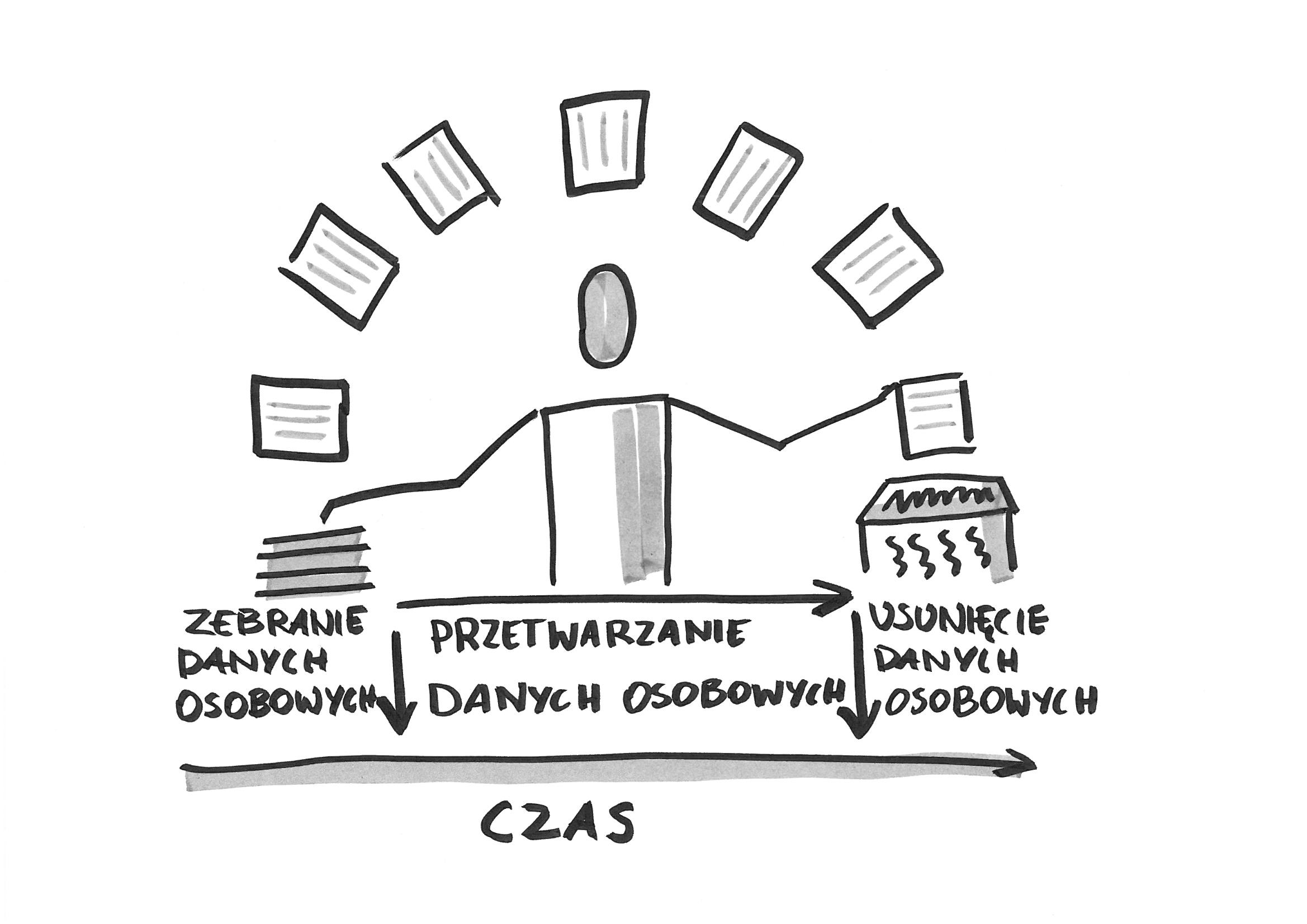 Przetwarzanie danych, zgodnie z tym samym art. 4 RODO, oznacza operację lub zestaw operacji wykonywanych na danych osobowych lub zestawach danych osobowych w sposób zautomatyzowany lub niezautomatyzowany, taką jak zbieranie, utrwalanie, organizowanie, porządkowanie, przechowywanie, adaptowanie lub modyfikowanie, pobieranie, przeglądanie, wykorzystywanie, ujawnianie poprzez przesłanie, rozpowszechnianie lub innego rodzaju udostępnianie, dopasowywanie lub łączenie, ograniczanie, usuwanie lub niszczenie. W dużym skrócie, wg mnie przetwarzanie danych to wszystko, co robimy z danymi między ich zebraniem a usunięciem, nawet jeśli te dane wyłącznie przechowujemy.